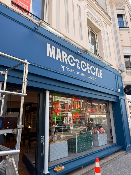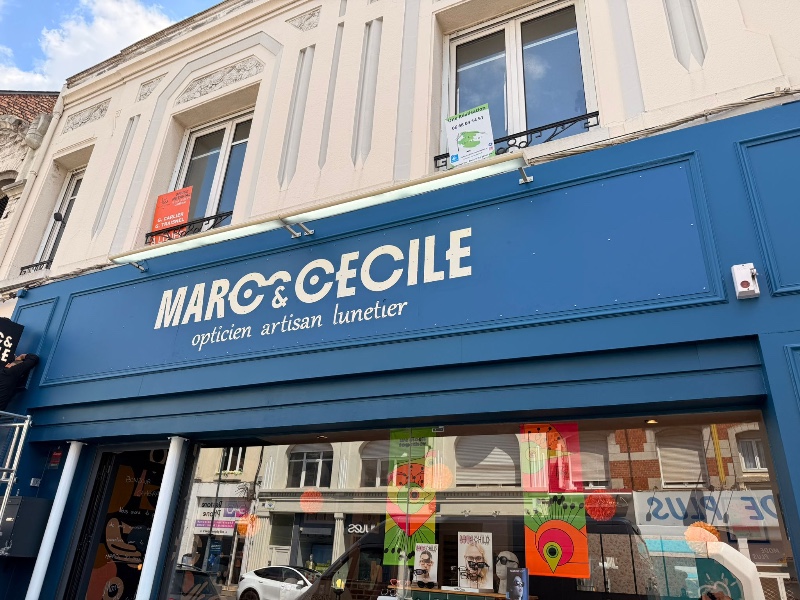 Le résultat : Une enseigne robuste, esthétique et durable, parfaitement alignée avec l'image d'artisanat lunetier haut de gamme de Marc & Cécile.